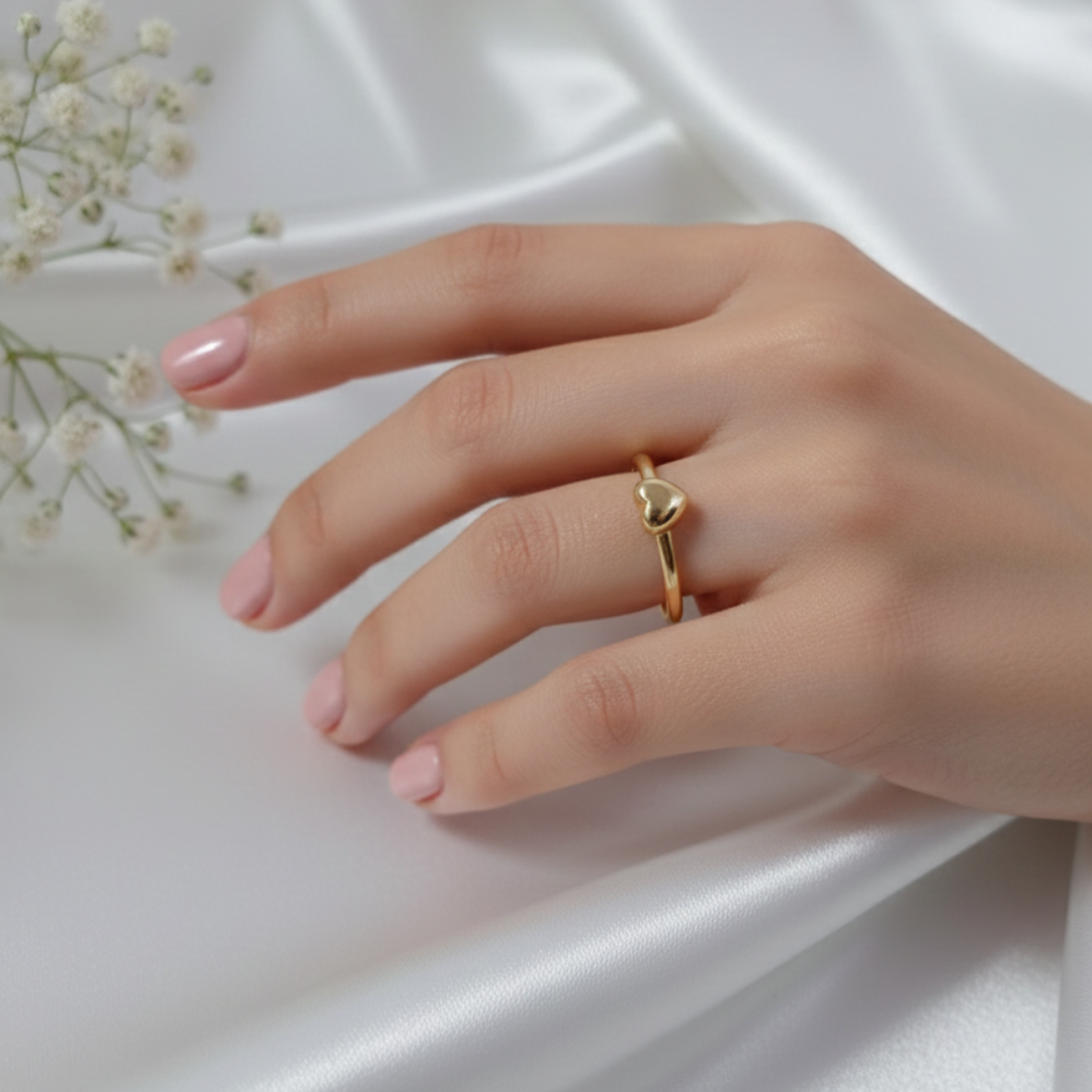 The versatility of the Amber Ring makes it a favorite for fashion-forward individuals. You can wear it alone as a minimalist statement or layer it with other gold bands to create a trendy, stacked look. Additionally, the heart design pairs beautifully with both casual denim and elegant evening wear. This ring also makes an excellent “first jewelry” gift for younger recipients due to its charming and approachable aesthetic. Because it lacks sharp edges or high-profile settings, it is a practical choice for active lifestyles.