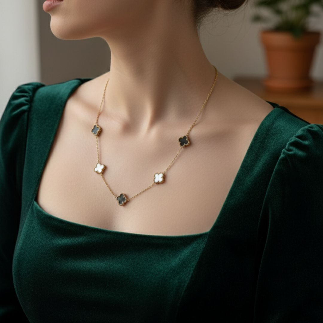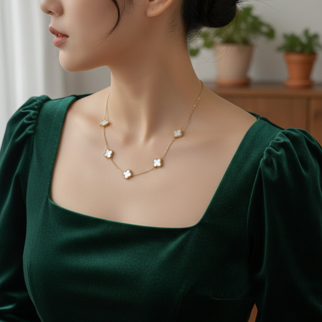 The Emblem Necklace represents the ultimate in functional luxury. Specifically, it offers a 3-way reversible design that adapts to your wardrobe. This piece features five elegant quatrefoil stations. Consequently, it provides three distinct looks in one.