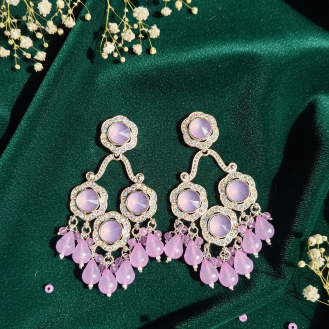 Fiery Dangler Earrings: A Radiant Symphony of Light and Lavender