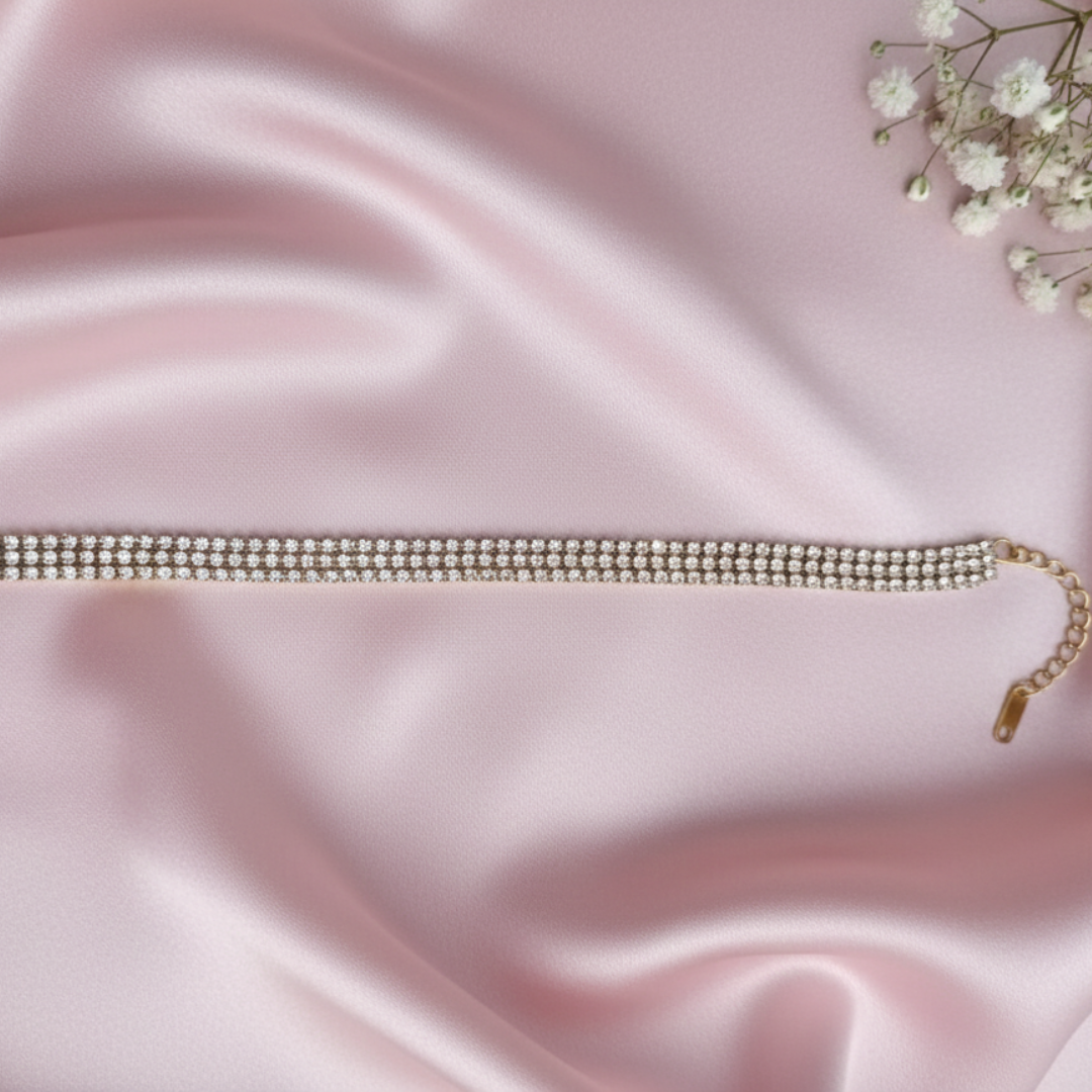 The Pave Bracelet represents the peak of high-octane glamour. It features three perfectly aligned strands of shimmering crystals. This piece creates a wall of light around your wrist.